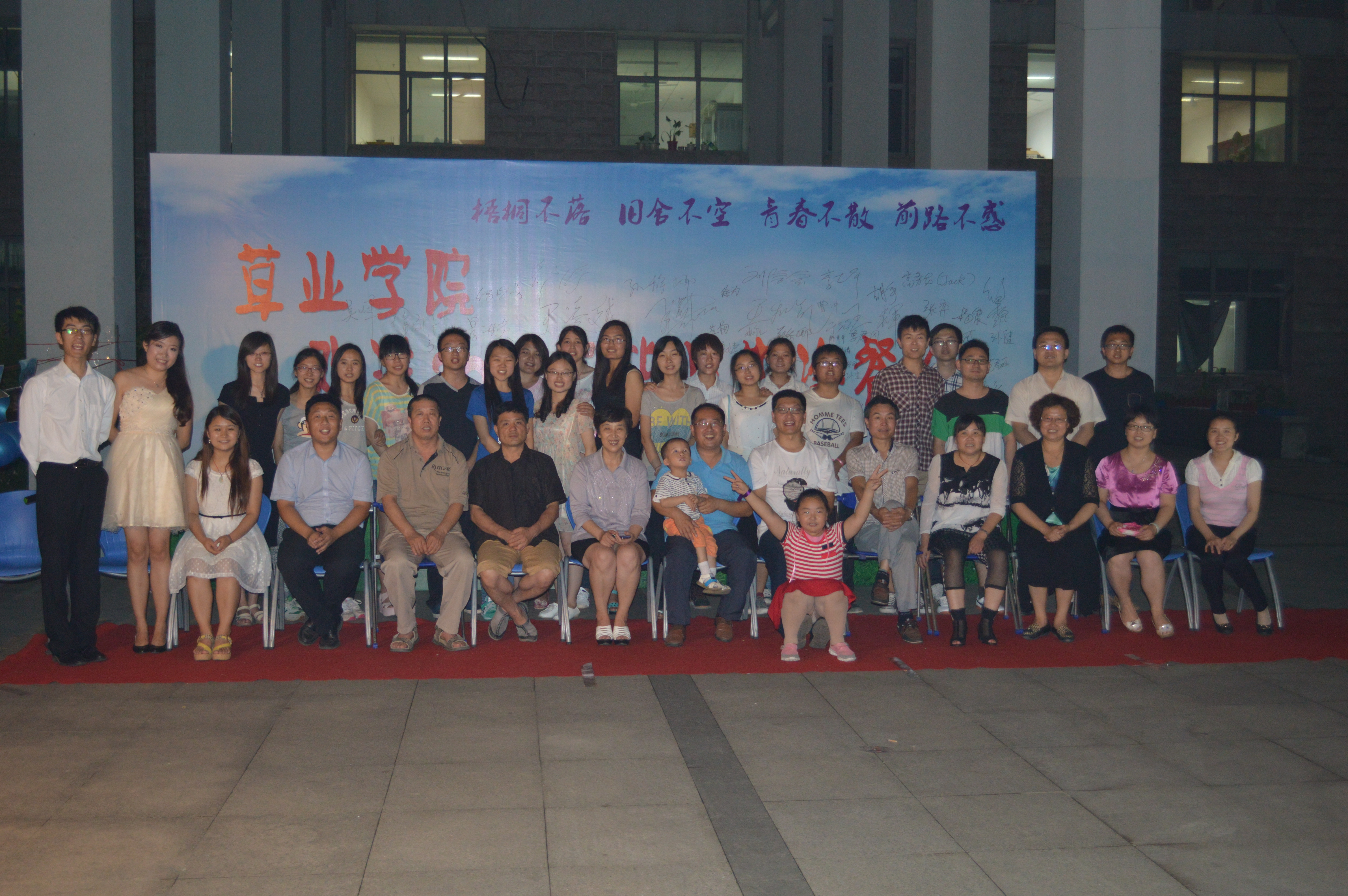 老师和同学们的见证下,带着美好的记忆开始新的路程。”自此冷餐会正式拉开了序幕,草业101班的同学们一一走过红毯,郑重而又庄严地在帷幕上签下自己的名字。他们中的每一个都独具特点,每个人都是草业101班的only one。大学四年的朝夕相处,让他们情同手足,也让他们暗生情愫。