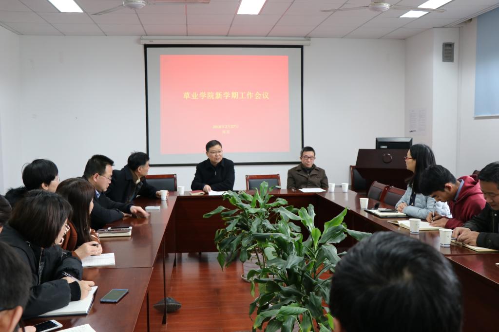 召开新学期全体教职工工作会议,学习传达学校新学期工作会议精神,部署学院新学期工作。学院党总支书记李俊龙、院长郭振飞等全体教职工参加会议。会议由李俊龙主持。