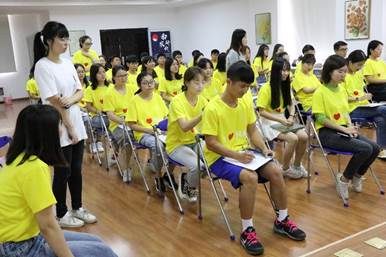 首先,所有成员根据自己手中提前抽取的扑克牌结成同伴,互相介绍自己家乡,本科院校,爱好等基本信息,之后,让对方将自己介绍给大家,大家在一片欢声笑语中熟悉了彼此。之后根据相同花色组成的四个大团队更让彼此有了更多的朋友。