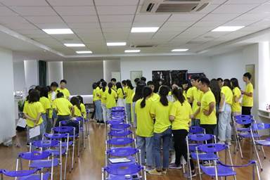 经过填表和彼此的分享,大家在刚刚养成的默契中开始了集体活动。那就是传数字游戏,大家分成四列,所有数字从后向前,大家不可以说话,并且成功传递的方法不可以再次使用。大家纷纷大开脑洞,积极运用规则上的漏洞协力完成团队任务。