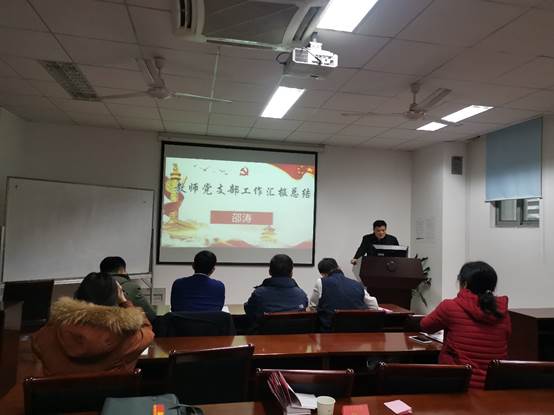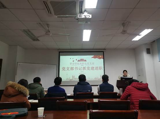 教师党支部书记邵涛、研究生第一党支部书记张敬、研究生第二党支部副书记季晓敏、研究生第三党支部书记赵娜和本科生党支部书记武昕宇先后将各个党支部2019年度的工作进行了述职汇报。汇报主要从支部工作开展情况、存在的主要问题和形势分析、下阶段的工作思路和措施等方面展开,重点介绍了党员发展工作情况、“不忘初心、牢记使命”主题教育情况、“主题党日”活动情况和“三会一课”开展情况,认真总结成绩,深入查找问题,进一步明确了今后的工作思路和努力方向。