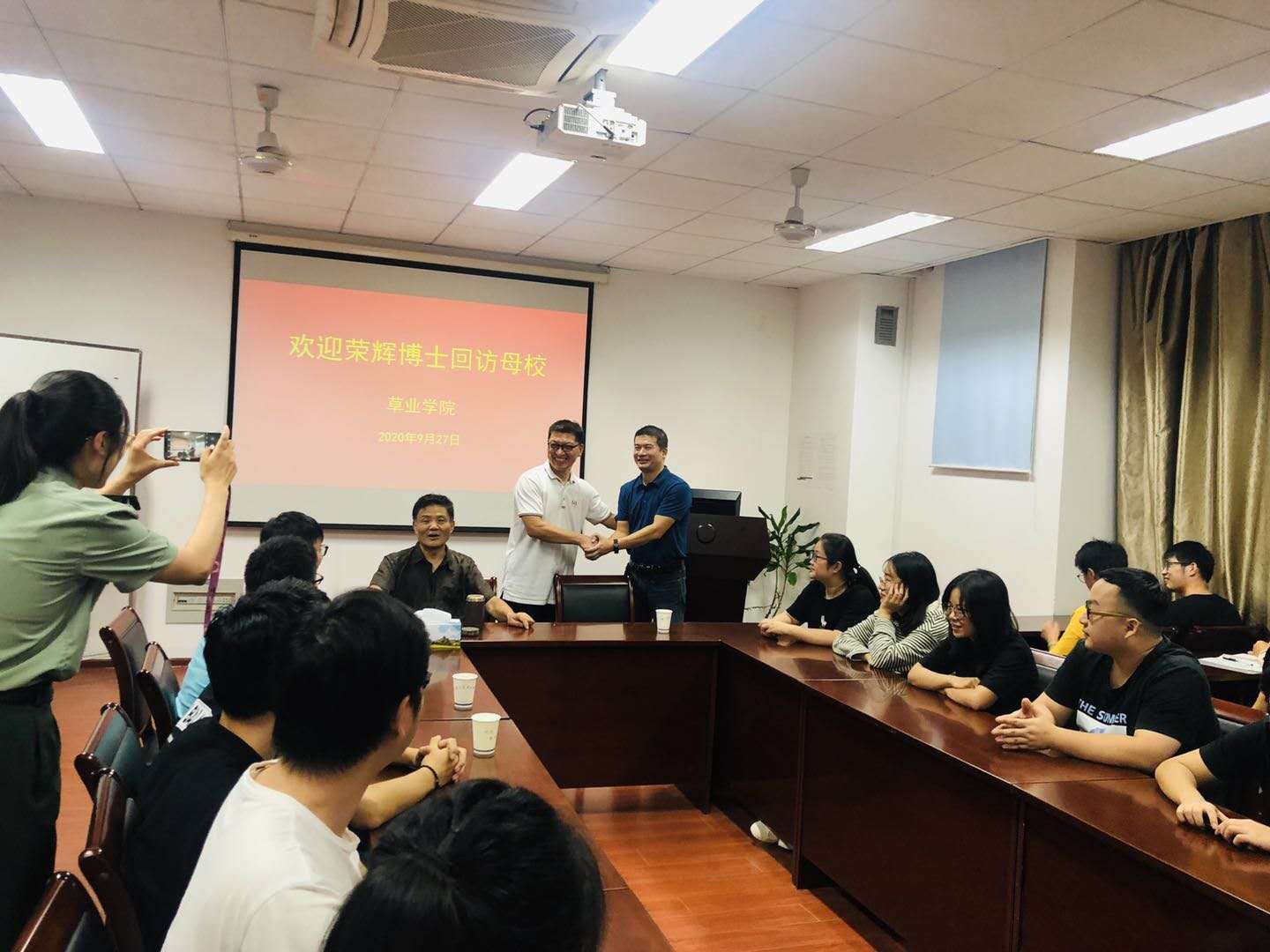 校友正大集团反刍动物事业部技术总监荣辉博士,应邀参加。全体研究生参加了座谈会,座谈会由院党总支委员、教工支部书记邵涛教授主持。