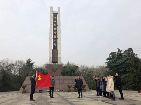 下午,全体党员来到了浦口求雨山的革命烈士纪念碑前。求雨山上,苍松翠柏掩映之下,烈士纪念碑巍峨高耸,“革命烈士永垂不朽”八个大字熠熠生辉。大家共同缅怀渡江战役革命先烈的英雄业绩,感受当年革命先烈们为国英勇奋战的革命精神。在革命烈士纪念碑下,邵涛带领全体党员面对党旗重温入党誓词,老师们纷纷表示要继承和发扬革命先烈的光荣传统,坚定政治信念,不忘初心,牢记使命,奋勇担当、砥砺前行,自觉用习近平新时代中国特色社会主义思想武装头脑,指导实践,立足岗位,站在新时代的起点,不忘初心、牢记使命,以更加坚定的信心和饱满的热情投入到新时代改革开放的新征程中。