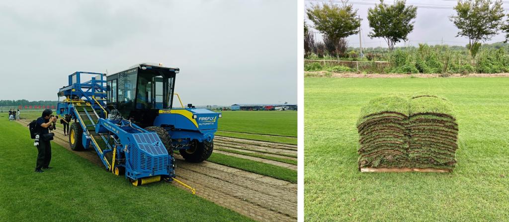 草坪三新技术实实在在地帮助了后白草坪品种更新换代,带动了农民增收致富。日前,草坪研究院引进了一台价值300万元的自动堆垛式草皮收获机,这是目前中国最先进的草皮收获设备。草皮自动收获技术将大大提高草坪生产效率,推动后白草坪实现机械化、标准化和现代化。
