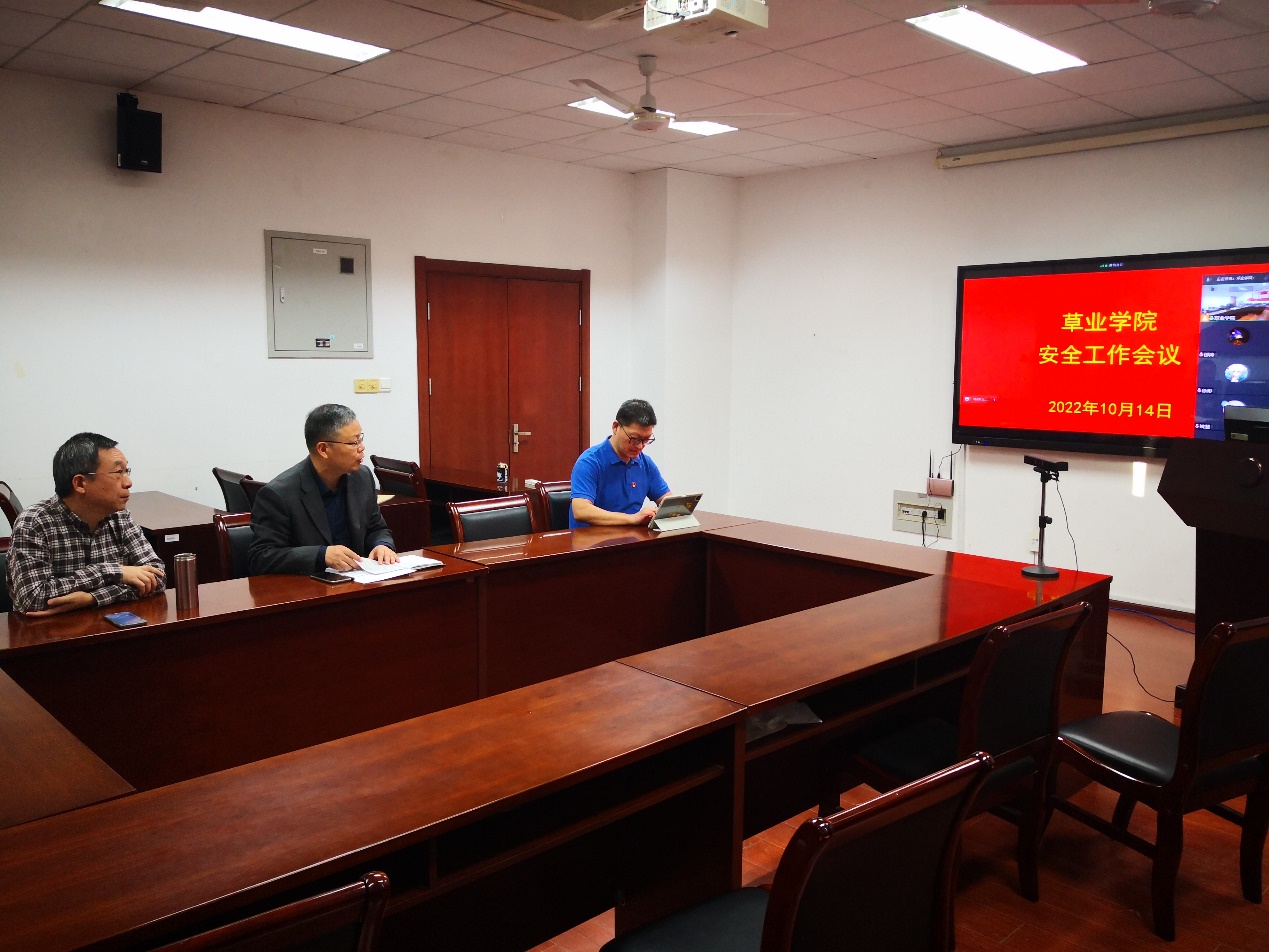 在理科南楼F304会议室召开安全工作线上会议,全院教职工参加会议,会议由院党总支书记李俊龙主持。