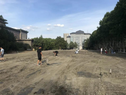 据杨志民教授介绍:目前自动喷灌系统安装、原有杂草清除工程已经完成,坪床建设工作正在进行中,预计于8月20日左右播种,一个月后新的草坪就会呈现在师生眼前。