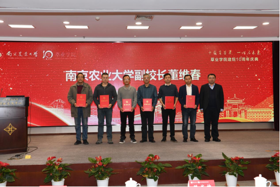 党委常委副校长董维春、江苏省农业农村厅环能处、江苏省农科院、江苏省中科院植物研究所、扬州大学、江苏农林职业技术学院等单位及江苏波杜农牧股份有限公司、江苏草毯绿波生态农业综合开发有限公司等10家企业代表,学校相关职能部门领导、兄弟学院领导、院友代表、院师生代表出席庆祝大会。大会由青娱乐