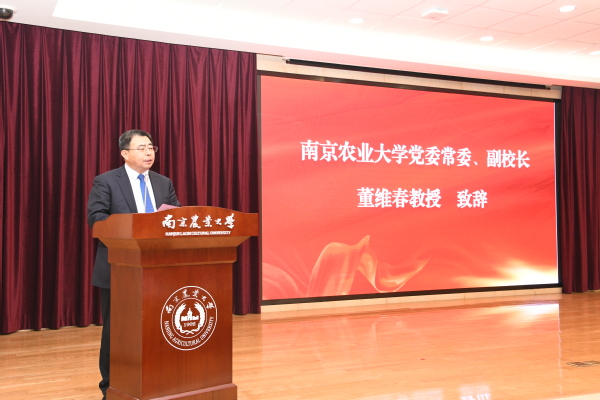 董维春在大会致辞中细数了三位大先生王栋、盛彤笙和任继周的家国情怀与感人故事,讲述了他们在我国畜牧、兽医和草学领域做出的开拓与贡献。董维春表示,三位先生师生相承,将毕生心血献给了国家和人民,为中国人的营养健康和食物安全殚精竭虑,他们坚守“诚朴勤仁”南农精神,担负“强农兴农”家国使命。学校此次隆重举行“盛彤笙草业科学奖学金”颁奖典礼,是为了缅怀王栋先生、盛彤笙先生的丰功伟绩,学习和继承任继周先生立志高远、胸怀天下的家国情怀,三位先生开拓创新、 敢为人先的学术精神,深耕讲台、诲人不倦的育人品格,学高为师、提携后人的大家风范,他希望青年草业学人,能够学习前辈,脚踏实地、勤奋拼搏,以只争朝夕的忘我精神,推进我国草业科学事业不断前进。