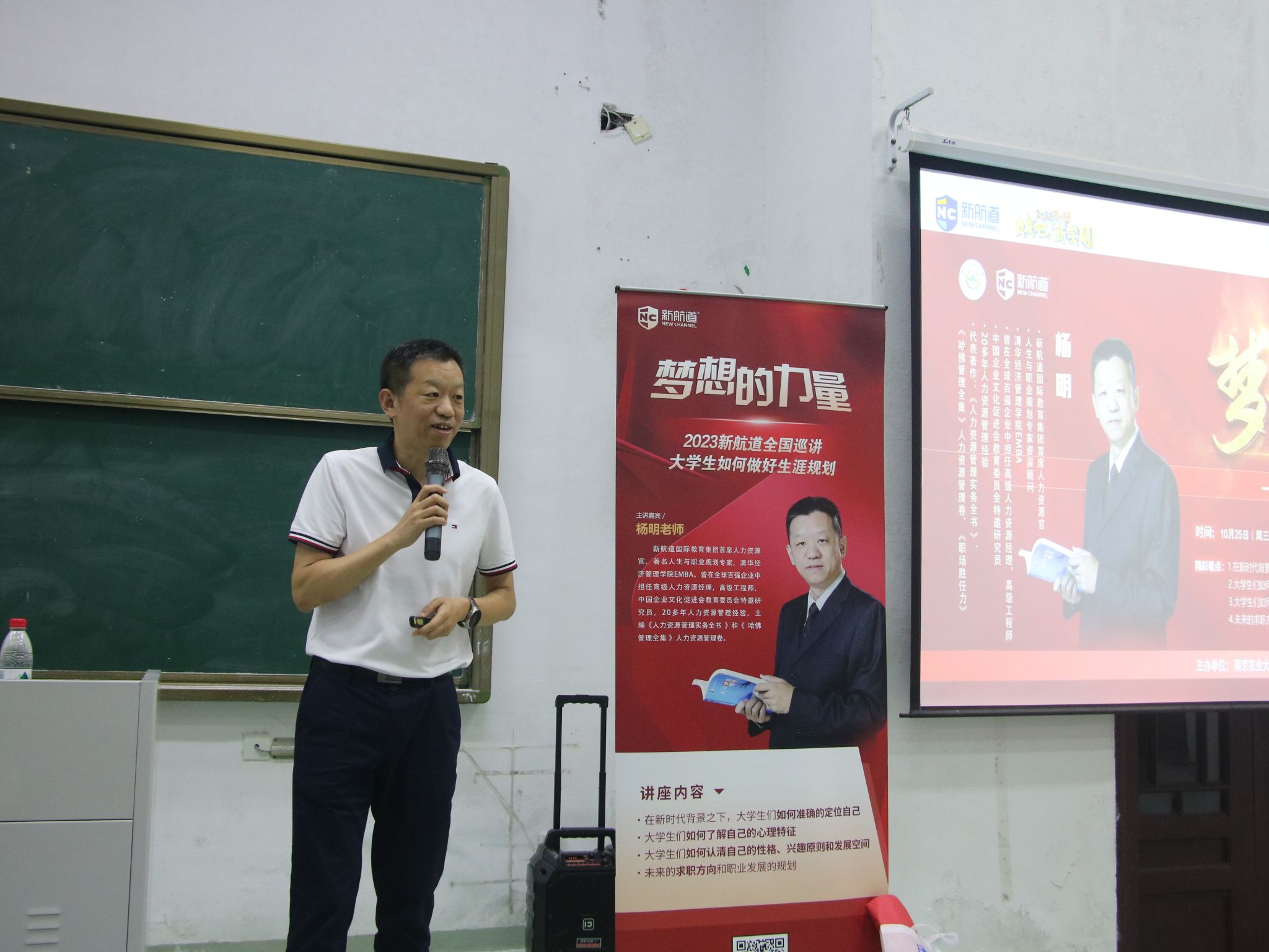 在卫岗校区主楼101教室举办了“梦想的力量——大学四年如何规划”专题报告会,报告会邀请新航道国际教育集团首席人力资源官杨明先生主讲,新航道南京学校负责人俞诚栋先生、外国语学院党委副书记韩立新、青娱乐