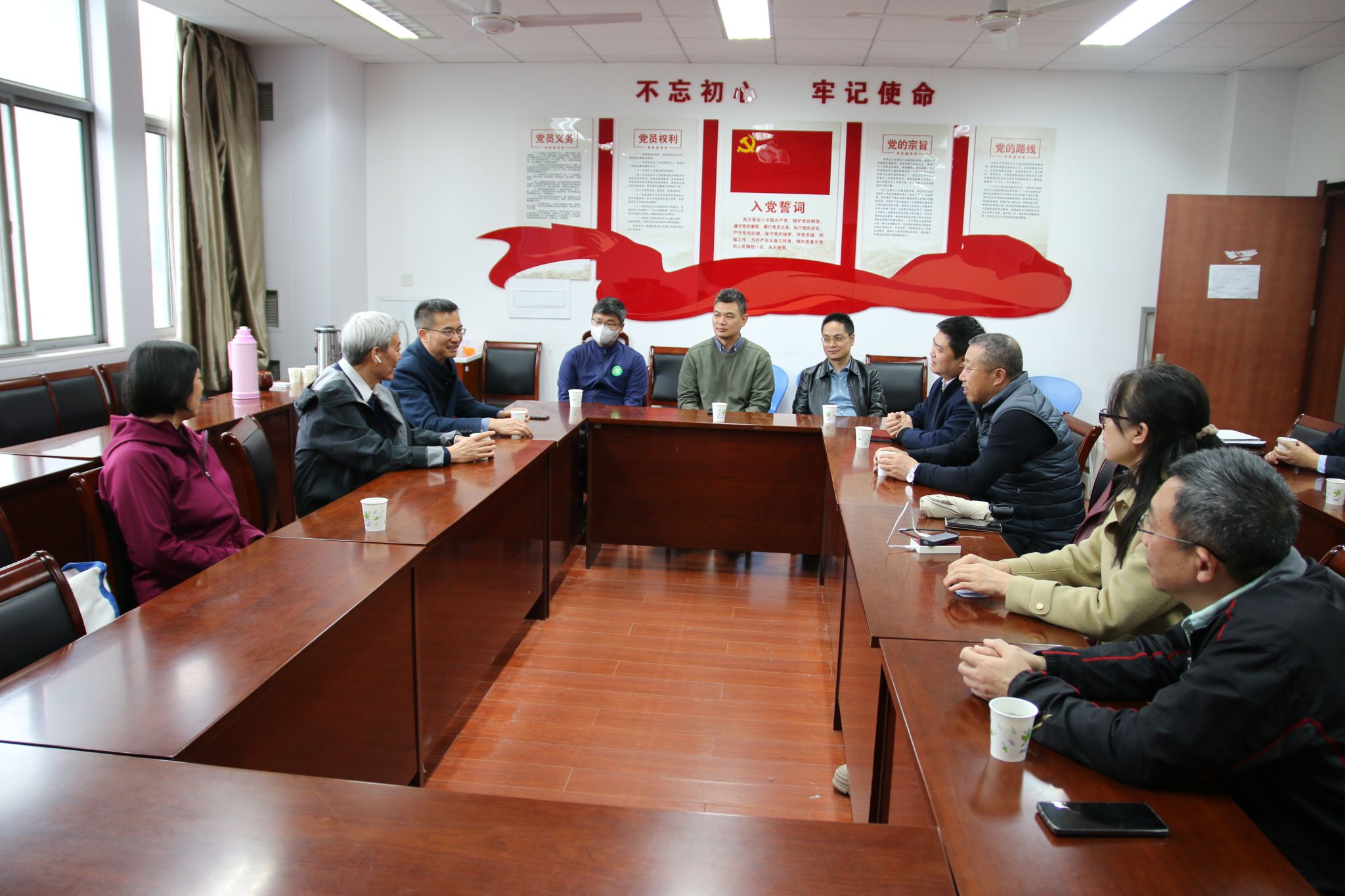 院长张炜教授、学科带头人朱伟云教授、郭振飞教授、杨志民教授等陪同南院士参观了学院的实验室,并举行了座谈会。