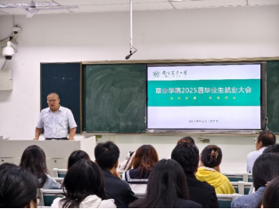 周建鹏作了毕业生就业形势交流。他基于往届毕业生就业率、市场供给等实际数据,为同学们深入剖析面临的就业形势,通过详实数据和生动案例,介绍了就业市场现状和趋势,帮助大家对就业形势有全面的认识。他重点强调了把握秋季招聘季的重要性,鼓励同学们充分利用这一时机,积极准备简历、参加宣讲会、投递简历,并主动与招聘单位沟通交流,争取更多的面试机会和就业可能性。他还提醒同学们要为自己寻找备选路径,精准定位个人发展方向,根据自己的兴趣、特长和职业规划,多方面了解和尝试不同的职业机会和发展路径。对考公的同学,他建议大家根据自己的实际情况和报考意向,合理安排时间,制定详细的计划,积极做好复习备考。