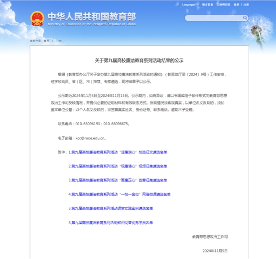 近日,教育部第九届高校廉洁教育系列活动“一校一金句”网络微课遴选名单公布,青娱乐