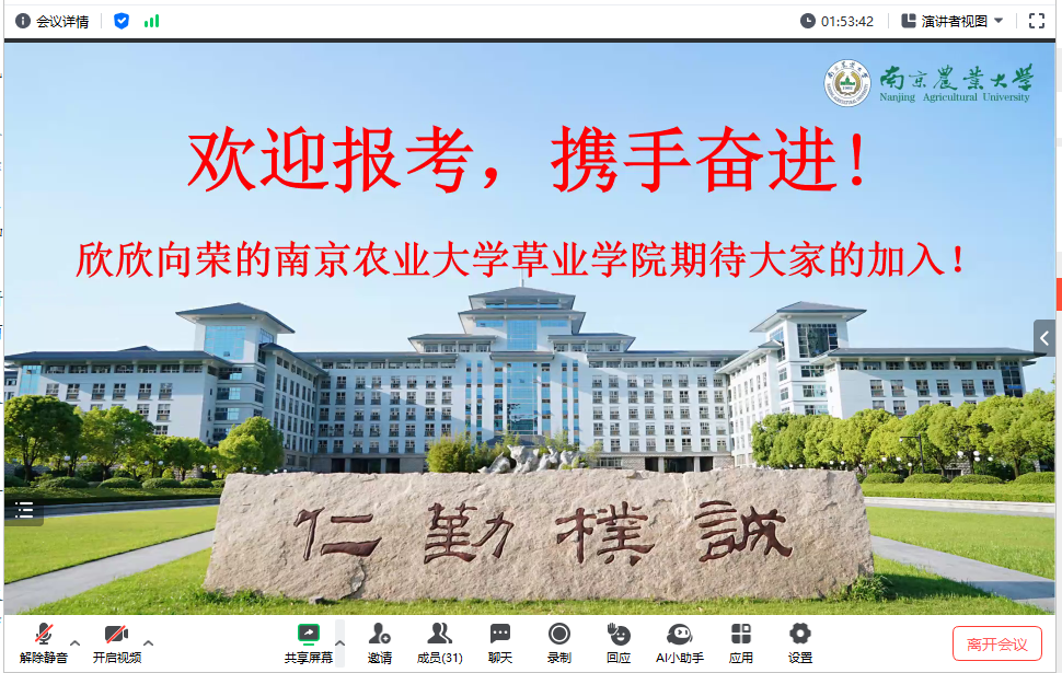 于7月10日举办“立草为业,共创未来”暑期优秀大学生线上夏令营活动。活动由院党委副书记韩立新主持。