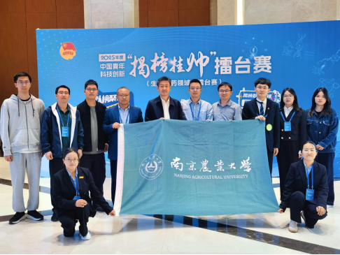郭振飞两位教师的精心指导下,进行了紧张的备赛,顺利通过初审进入终审擂台赛。经过终审擂台赛紧张而激烈的比赛,杨波团队的“揭榜挂帅”项目荣获2025年度中国青年科技创新“揭榜挂帅”擂台赛(生物医药领域主擂台赛)特等奖。