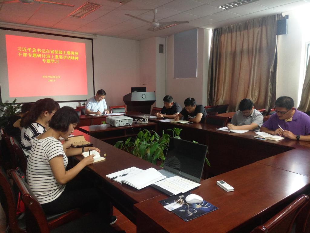 2017年9月草业学院党总支各支部书记和委员们在理科南楼学院会议室开展了习近平总书记重要讲话专题学习,会议由李俊龙书记主持,李书记围绕讲话的重要内容展开,中国特色社会主义是改革开放以来党的全部理论和实践的主题,全党必须高举中国特色社会主义伟大旗帜,牢固树立中国特色社会主义道路自信、理论自信、制度自信、文化自信,确保党和国家事业始终沿着正确方向胜利前进。习近平总书记重要讲话,科学分析了当前国际国内形势,深刻阐述了5年来党和国家事业发生的历史性变革,深刻阐述了新的历史条件下坚持和发展中国特色社会主义的一系列重大理论和实践问题,深刻阐明了未来一个时期党和国家事业发展的大政方针和行动纲领,提出了一系列新的重要思想、重要观点、重大判断、重大举措,具有很强的思想性、战略性、前瞻性、指导性,为党的十九大胜利召开奠定了重要的政治基础、思想基础、理论基础,对于团结动员全党全军全国各族人民锐意进取、开拓创新,满怀信心地为决胜全面建成小康社会、夺取中国特色社会主义伟大胜利而奋斗,必将产生重大而深远的影响。随后各支部委员分享自己学习讲话心得体会,进行了交流。