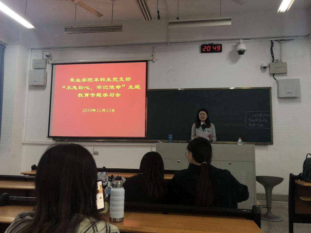11月13日晚,本科生党支部召开“不忘初心、牢记使命”教育专题学习会,本科生党支部书记武昕宇书记主持了本次会议。