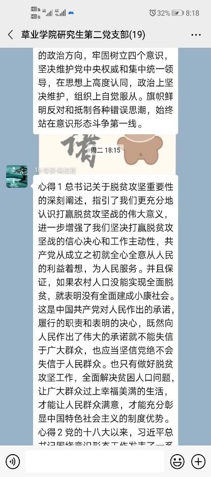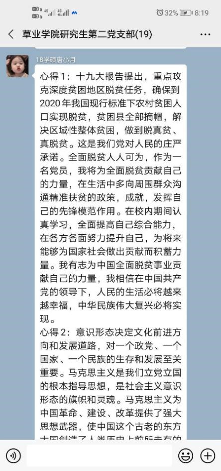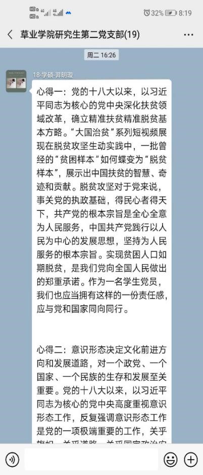 研究生第二党支部开展线上理论学习。研究生第二党支部全体党员参与了本次线上学习,本次理论学习讨论会议由党支部副书记羿明璇同志主持。