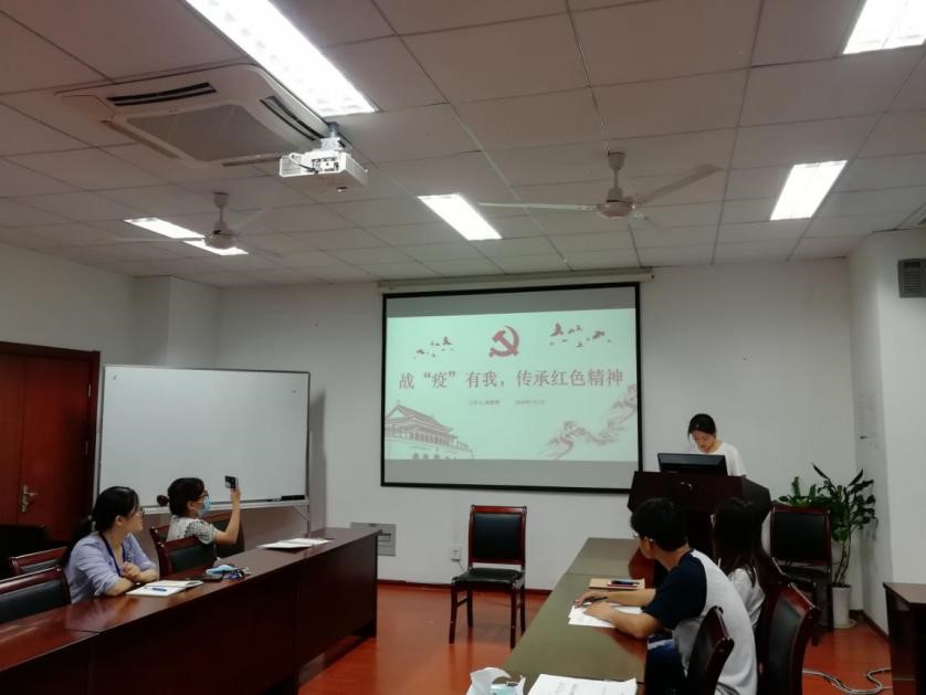 会议第一项,支部组织委员杨紫荆同志做了《战“疫”有我,传承红色精神》的微党课,给大家讲述了在武汉、湖北,在全国各地社区、单位的青年志愿者开展志愿服务的若干事迹,并分享了其疫情期间在家乡县城的防疫志愿工作经历。杨紫荆同志2月中旬志愿报名并根据团县委的安排,同另一名志愿者协助一家超市在外维持队伍秩序,人员测温消毒。其主要工作是指导人们按安全距离排队,检查个人防护,对不合格者及时劝返,提醒登记流程;换班测温消毒等;党支部全体同志聚精会神地聆听杨紫荆同志的分享,并由衷敬佩其冲锋在前、勇挑重担,不惧风雨、敬业坚守的责任与担当。