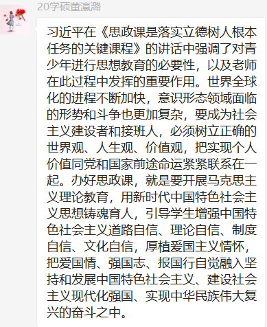 研究生第三党支部开展关于《思政课是落实立德树人根本任务的关键课程》的专题学习会的线上学习活动圆满结束。