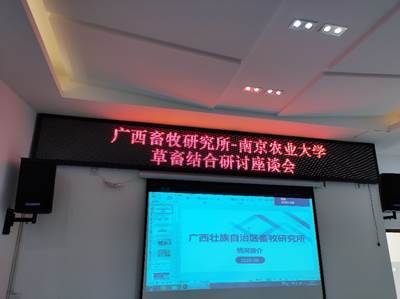 邵涛教授首先访问了广西畜牧研究所,并作了题为《苜蓿青贮技术研究》的专题报告,得到全所职工的一致好评。在随后的草畜结合研讨座谈会上,邵涛教授代表我校饲草调制加工与贮藏研究所同广西畜牧研究所探讨了将当地的主要农副产品甘蔗尾叶、香蕉叶和罗汉果渣等加工成青贮饲料的可行性,分析了当地草食家畜饲料生产过程中遇到的问题,并为当地企业出谋划策。双方希望以这次交流访问为契机,在今后进一步加强交流合作。
