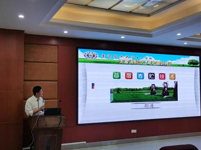 的技术支持下,有效利用象草、甘蔗尾叶、香蕉叶等当地主要粗饲料资源,推动当地畜牧业发展。邵涛教授介绍了学院在饲草调制加工与利用方面的相关研究成果,并表示愿意加强双方单位合作交流,共同推动当地农业发展,为扶贫攻坚和乡村振兴贡献力量。
