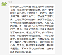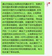 研究生第三党支部党员群中分享了与土地革命相关的资料和视频,党支部各党员在群里积极发表学习心得。通过本次学习,我们认识到,土地革命战争使中国共产党的武装力量从无到有,并逐渐走向成熟,同时也使我党意识到照搬苏联的革命方法与策略并不可行,只有联系中国实际,才能找到一条适合中国国情的路,真正救中国。此外,中国共产党在土地革命时期形成了一整套适合中国革命战争情况的战略战术(工农武装割据理论等),为实现全国抗战和发展中国革命事业奠定了坚实的基础。