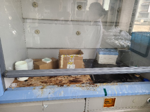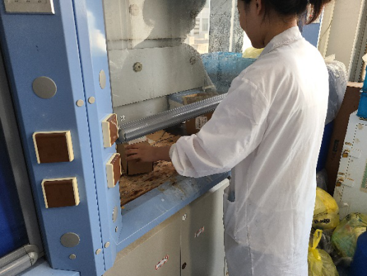于晴同志将通风橱清理干净,董瀛潞同志将实验室中未贴标签的瓶子找到相关人员贴上了标签,避免试剂被误用或者对他人造成伤害。