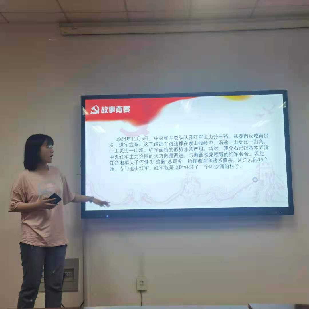 最后,严妍同志为大家生动讲解了半床棉被的故事。在湖南汝城县沙洲村,3名女红军借宿在徐解秀老人家中,临走前将她们仅有的一条棉被剪了一半留给老人。老人说:“什么是共产党?共产党就是自己有一条被子,也要剪下半条留给老百姓的人。” 跟“半条被子”的故事一起感动我们的是共产党人与人民群众荣辱与共、风雨同舟的鱼水深情,是共产党始终依靠群众、始终为了群众的不变初心。