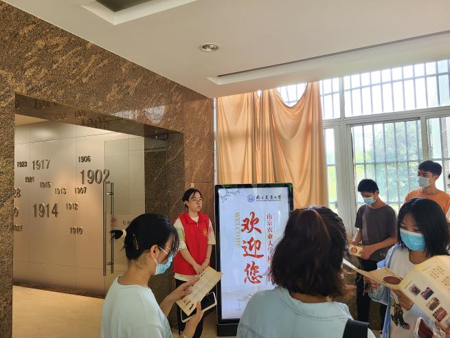 在校史馆讲解员的引导下,同学们有序进入馆内。参观过程中,讲解员为大家梳理了南农发展的历史脉络,并用生动的语言带领同学们一起重温了每一辈南农人的艰辛奋斗史,带领同学们了解农大学科建设、科技服务以及党建思想工作等内容。校史馆中的一张张照片,从泛黄褪色到鲜艳崭新;一件件展品,从时代印记到创新建设,一代代南农学子,从懵懂进校到为校争光……