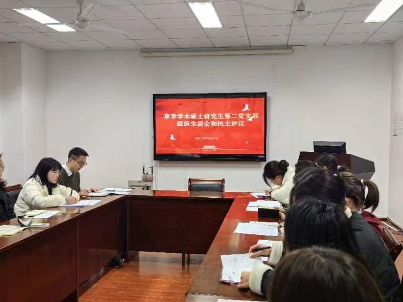 按照学院党委《关于召开2023年度支部组织生活会和民主评议党员工作的通知》要求,2月23日,草学学术硕士研究生第二党支部在理科南楼F304组织开展组织生活会和民主评议党员工作,为进一步深入贯彻学习习近平总书记在中国二十大重要讲话精神,引导党员将党的二十大精神在实际工作及学习中融入、在实际行动中践行、在思想精神中贯穿,同时集体学习了《习近平在学习贯彻党的二十大精神研讨班开班式上发表重要讲话强调正确理解和大力推进中国式现代化》。会议由草学学术硕士研究生第二党支部书记杨波同志主持,学院党委副书记高务龙出席会议。