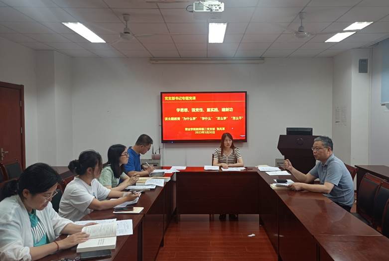 2023年5月30日,青娱乐 教师第二党支部在理科南楼F304开展专题党课学习活动,支部书记张风革主讲题为《谈主题教育“为什么学”“学什么”“怎么学”“怎么干”》的党课。