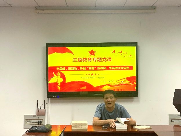 会议第二项议程:主题教育专题党课。会上,邵涛书记给全体党员同志讲了主题为“学思想,建新功,争做“四有”好教师、争当时代大先生”的主题党课。邵涛书记首先带领全体党员同志逐字逐句地学习了习近平总书记给中国农业大学科技小院的同学们回信精神,感受到了习近平总书记回信中饱含的“三农”深厚情怀和对青年人的殷切期望,同时作为农业院校教师,也深受鼓舞。随后,邵涛书记带领全体党员同志重温了习近平总书记关于师德师风的重要论述,论述深刻指出了教师作为筑梦人的神圣职责,提醒党员教师为党育人的初心不能忘,为国育才的立场不能改,要努力做精于“传道授业解惑”的“经师”和“人师”的统一者。最后,邵涛书记带领全体党员教师研读了《研究生导师指导行为准则》:坚持正确思想引领、科学公正参与招生、精心尽力投入指导、正确履行指导职责、严格遵守学术规范、把关学位论文质量、严格经费使用管理、构建和谐师生关系。全体党员同志沟通交流了本次学习心得体会,邵涛书记提出,教师要做师德高尚者,高尚的人才能教出高尚的人;做静心学习者,拥有一桶不断更新的时代之水,是“大先生”的基本要求;做助学教练者,课堂是师生共同成长的关键时空;做创新研究者,教不研则浅,研不教则