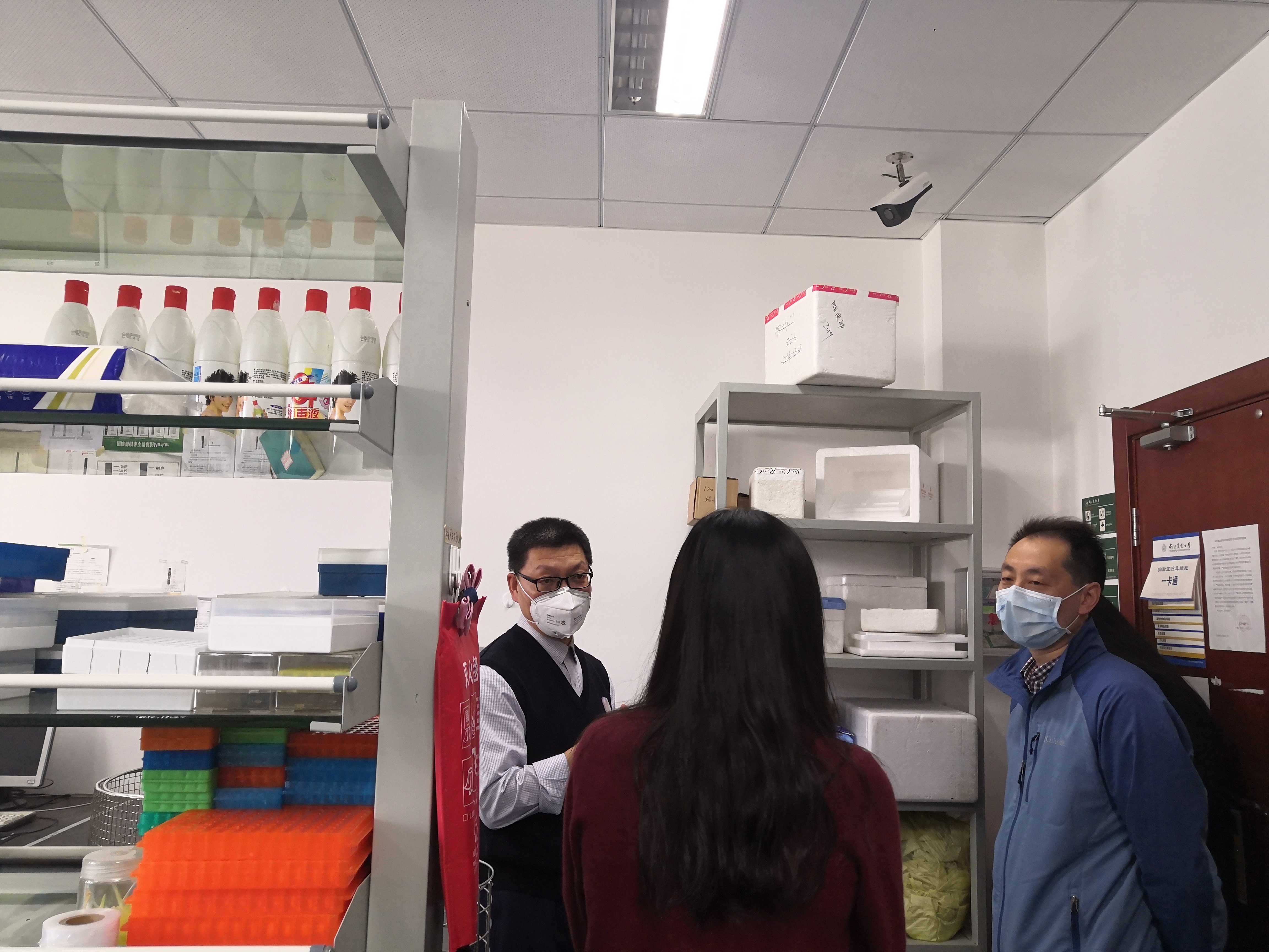 4月16日上午,学院又组织了学院内部实验室疫情防控和安全管理自查工作。在自查过程中,高务龙检查了各团队防疫物资准备情况,突出强调了各实验室要每天进行环境消毒与清洁、要妥善分批安排师生按排定日程时间进出实验室、所有进出实验室的师生均须落实签到与签退制度等要求,以保证实验室内部人员有足够的安全距离,并保证对人员往来情况可进行有效追溯。