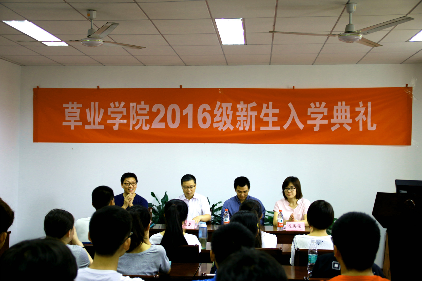 9月19日下午三点青娱乐 2016级新生入学典礼在青娱乐 会议室如期举办,青娱乐 党委书记李俊龙,副院长高务龙、副院长徐彬、草业国际161班班主任迟英俊、辅导员邵星源以及16级所有新生参加了本次会议。会议由高务龙主持。
