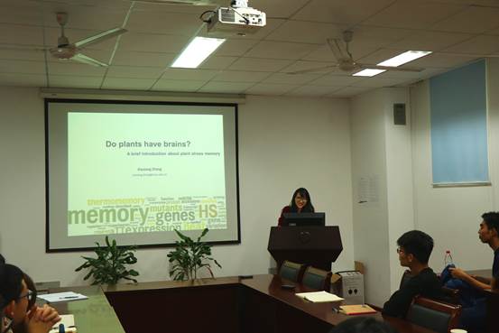 第二主讲人张夏香老师同样对自己博士以来的研究方向进行了回顾,她以植物记忆为题敲开研究大门,从小麦到拟南芥,不断挖掘科研深度。她与大家一起讨论了国内外科研环境,科研人员工作习惯的差异,鼓励大家积极申请留学项目。高务龙副院长也分享了他在出国访问期间的所见所闻。