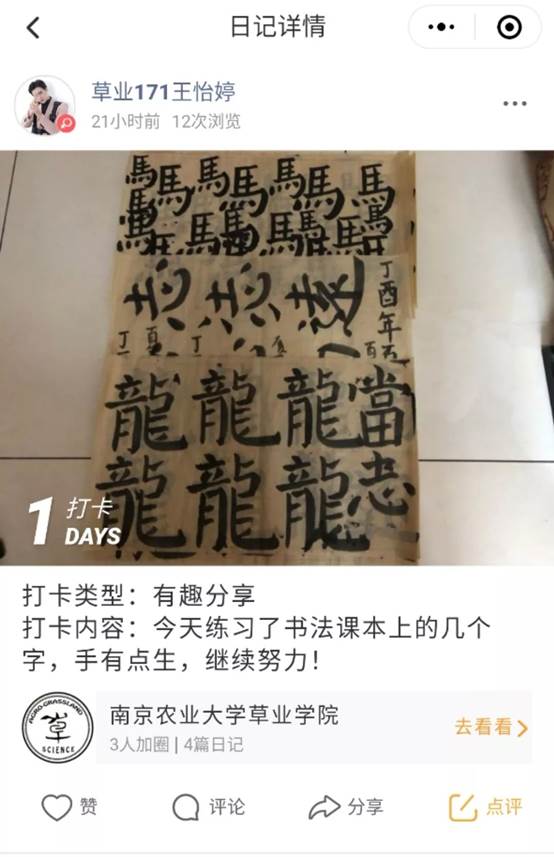 特别注意:加入“小打卡”后,大家将自己的备注改为年级+姓名,如“草业171 张三”