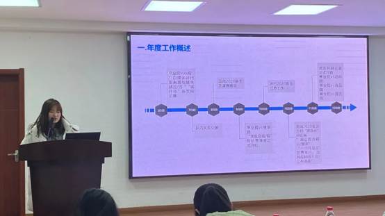 大会第一项议程为大一到大三本科生及研究生各班级年度工作汇报。各班级发言人分别介绍了自身所在班级,总结了班级本年度特色活动,并提出了下一年工作展望。