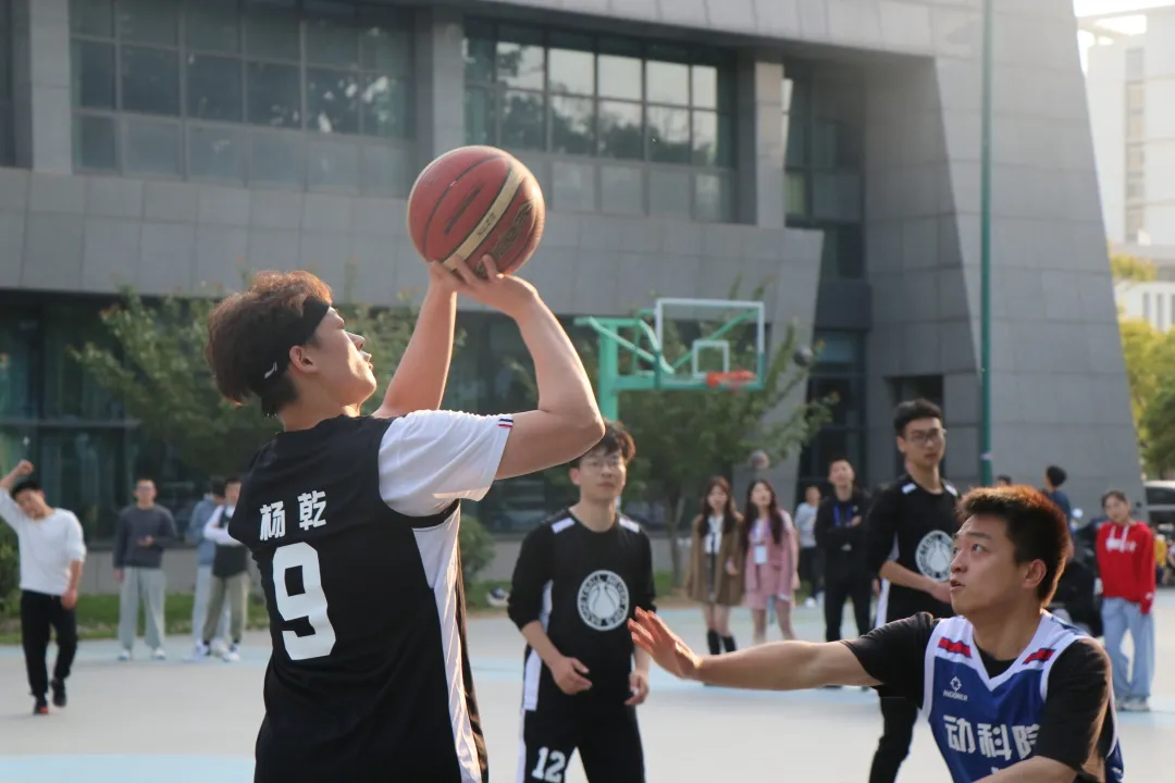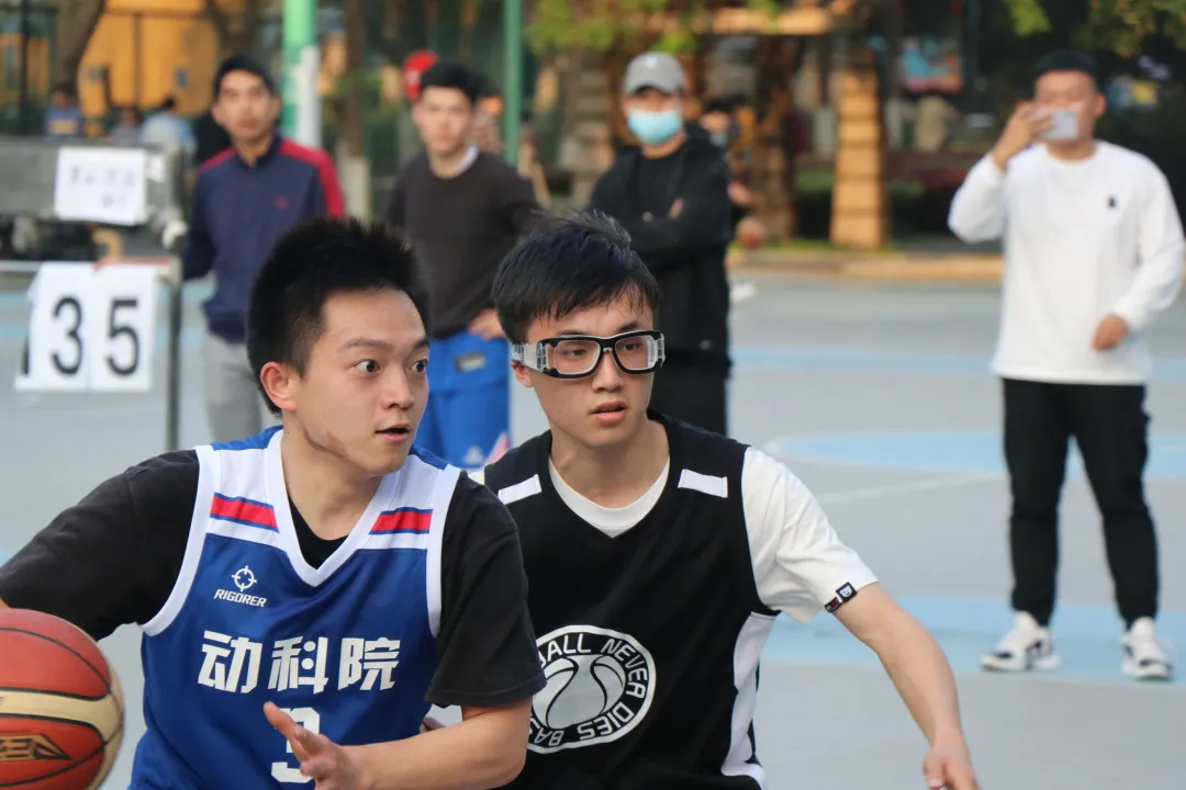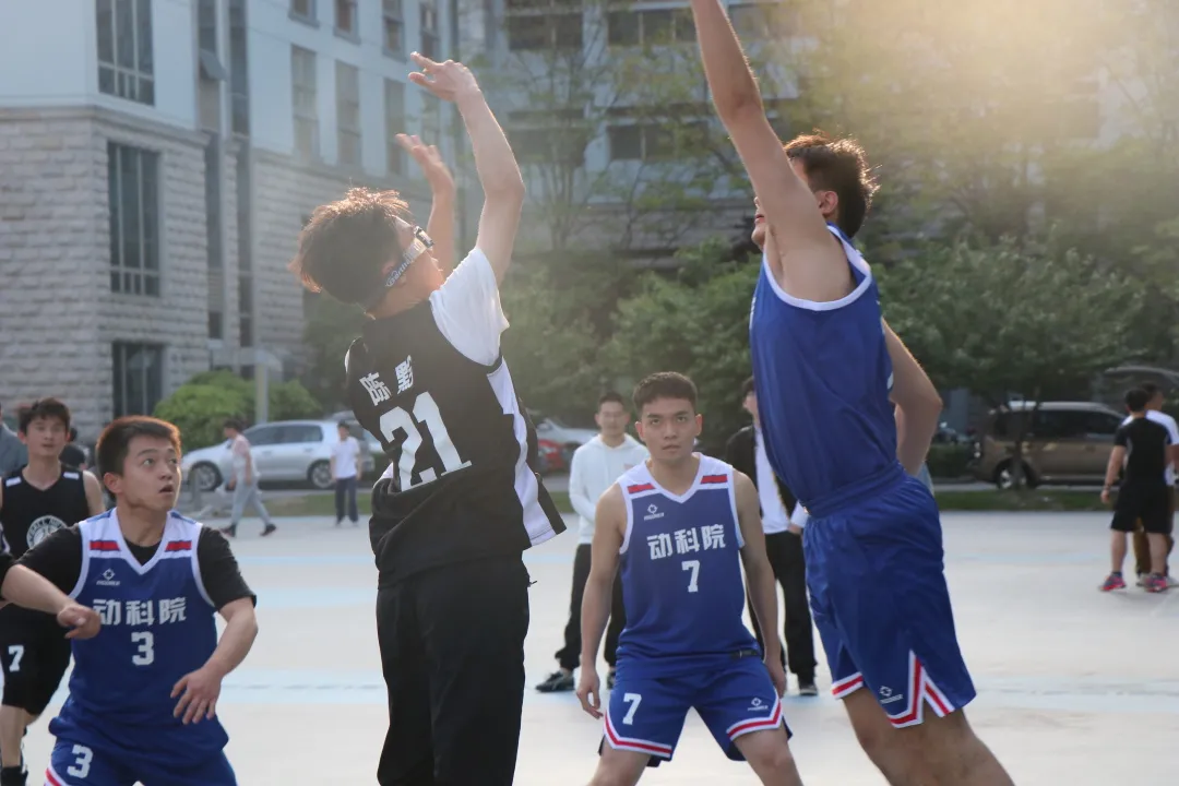动医队也是去年篮球赛的前三甲,实力不容小觑,有着赫赫威名,但是草业-外语(联队)队员越挫越勇,迎难而上,赛场上腾转挪移,移形换位、配合默契,赢来了场外观众的阵阵喝彩。