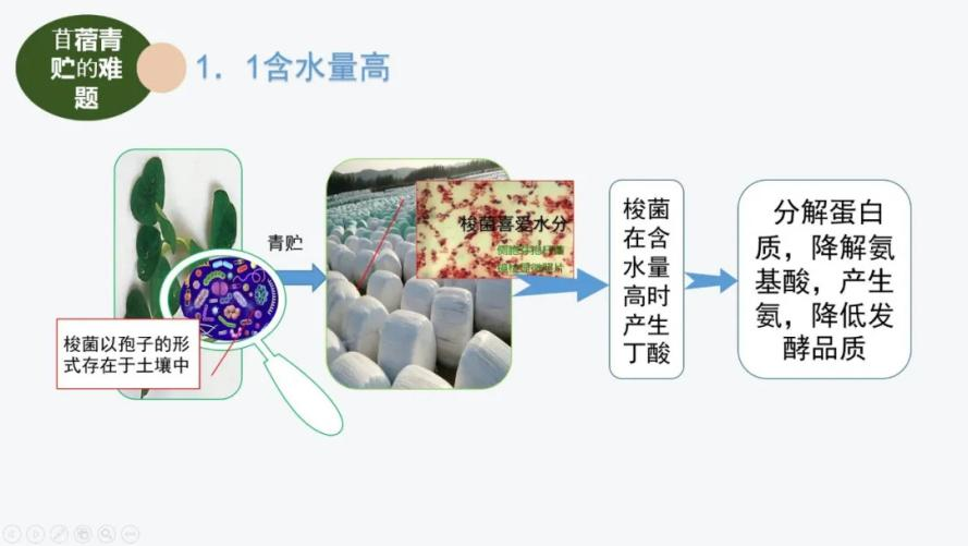 首先,提出了苜蓿的收获期含水量高、缓冲能高、含糖少、附着乳酸菌数量少四大难题。