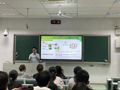 第一部分是科学研究的基本方法、程序和规则。他从我校校友蔡韬博士的人工合成淀粉的例子开始,阐释了规范的科学研究的一般规律,详细介绍了科学研究工作中从观察现象,发现问题,提出假说,查阅文献,设计实验,处理数据,分析结果到论文撰写全过程的基本方法与原则。