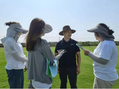 随后,实践团的成员们根据事先准备好的访谈提纲分别对乡镇政府工作人员、种植大户以及草坪经纪人进行了深度访谈。通过对当地从事草坪产业的典型代表如“草三代”罗先波等人的访谈,同学们了解了后白镇的草坪产业发展历史、产业规模等基本情况,熟悉了解了有关草坪种植的播种、收割、养护等相关技术手段。