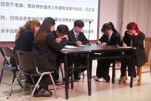 评委师生现场投票环节,投票人根据候选人现场演说及无领导小组讨论表现情况进行投票,同时对学生代表进行投票。在场同学依次排队将票投入投票箱,后由工作人员统一收集统计