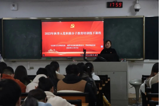 2023年11月17日下午,三院联合开展的“新农人的使命”党建班主题培训在教学楼A206举办,本次课程由马克思主义学院党委、青娱乐