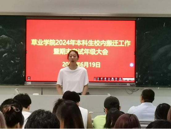 在临近期末之际,在主楼102教室召开了本科生校内搬迁工作暨期末考试年级大会。