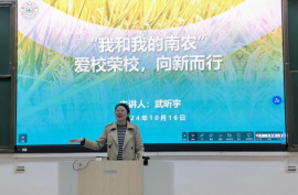 武昕宇进行了“爱校荣校、向新而行”主题教育。她说,我们即将迎来学校建校122校庆日,各项校庆活动精彩纷呈。为培育学生爱校情怀和荣校热情,推动以“诚朴勤仁”为核心的南农精神,在新时代、新校区、新起点、新征程中传承实践,她以自己的学习与工作经历为切入点,用主楼大草坪建植过程中的故事,展现青娱乐