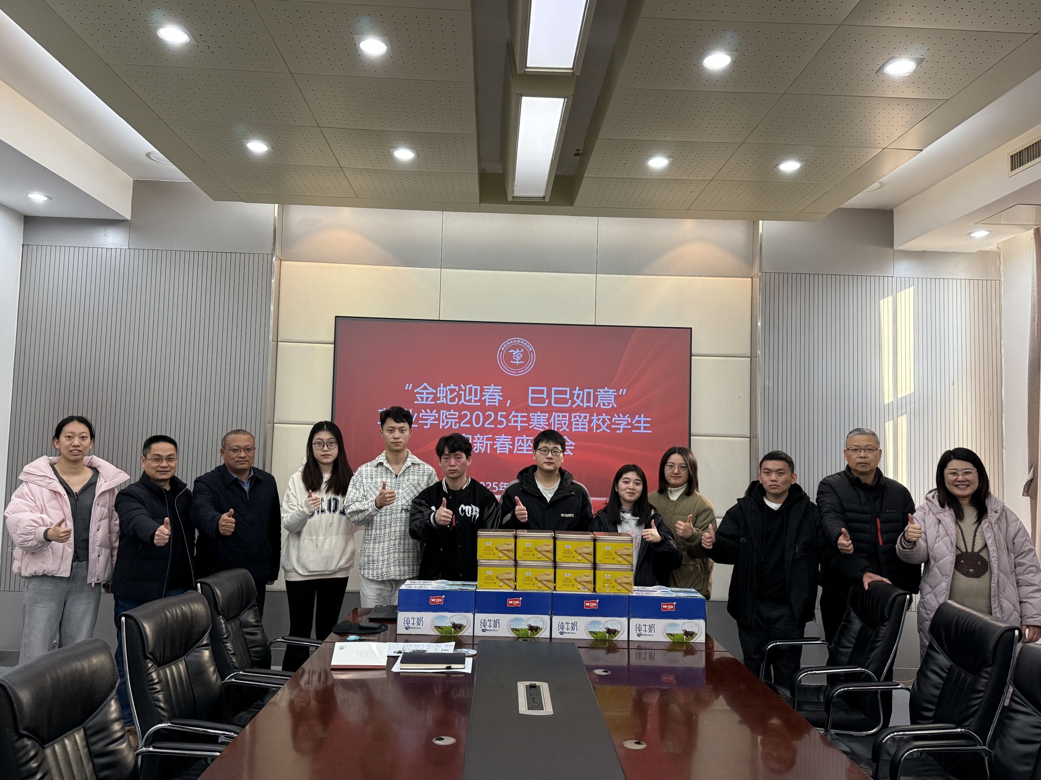 最后,学院领导为留校学生发放新年礼包,座谈会在全体师生欢乐融洽的气氛中圆满结束。