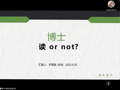 饲草调制加工与贮藏方向的博士研究生。她主要从“为什么读博”、“读博的准备”以及“体会”这三个部分,讲述了读博所需要的思想准备以及科研能力准备。她告诉大家:要有好的心态以及保持初心,在没有被科研压垮的时候,不要先被自己的精神内耗给打倒了,也不要忘记自己最初的追求。