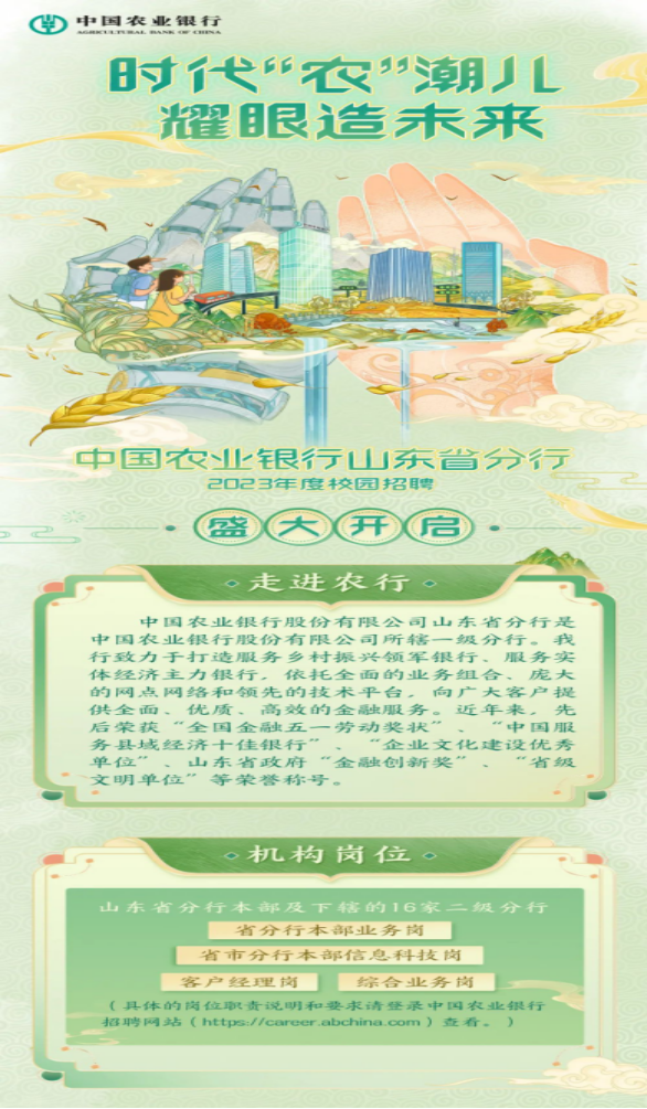 山东农行2023年度校园招聘开始了!