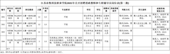 附件:江苏农牧科技职业学院2021年公开招聘思政教师和专职辅导员岗位表(第二批)