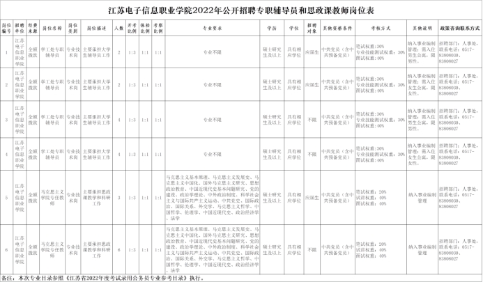 附件:江苏电子信息职业学院2022年公开招聘专职辅导员和思政课教师岗位